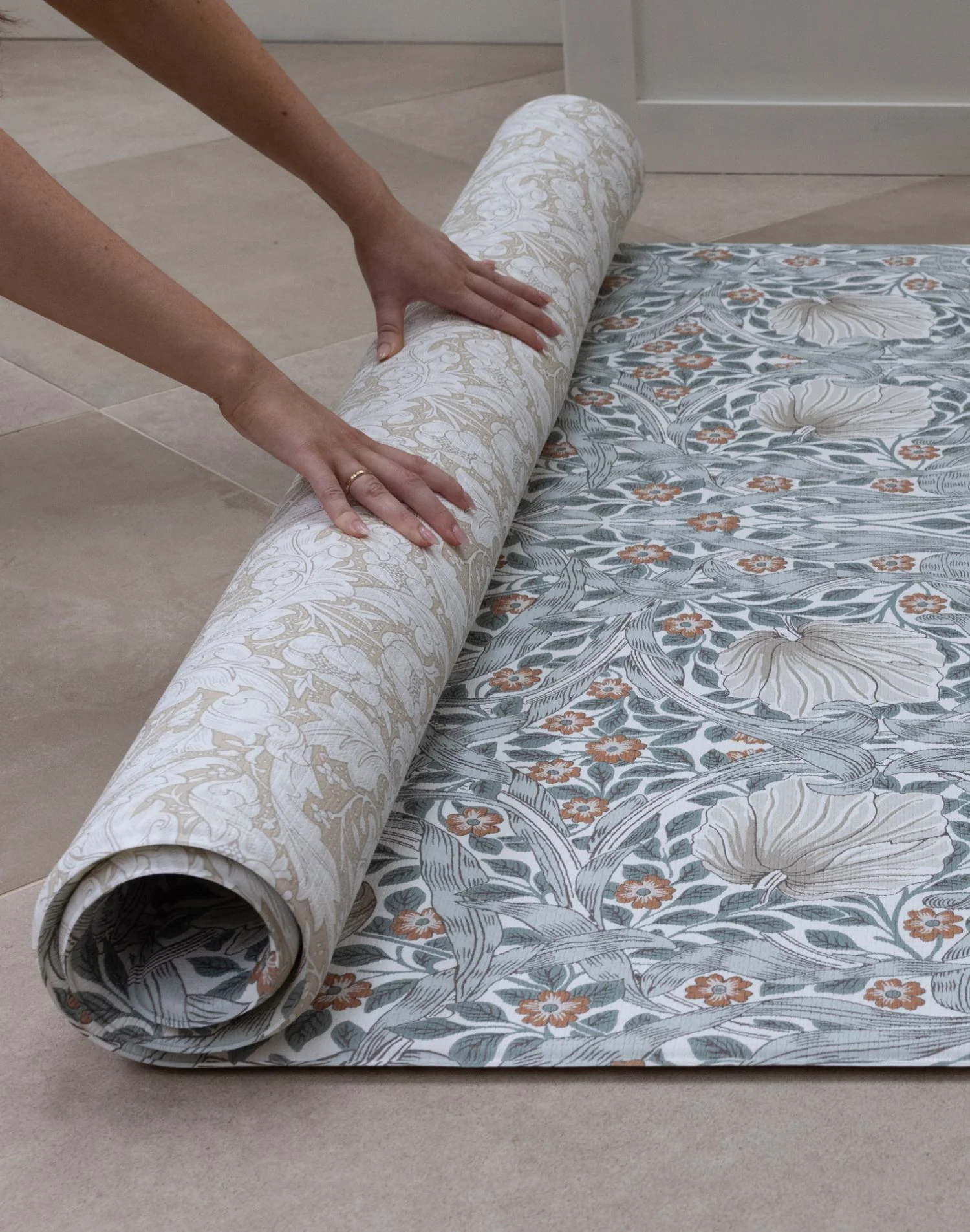 Hand selected alongside Morris & Co. The Pimpernel Mineral Blue play mat offers the heritage, maximalist print in a soft + versatile colorway. Add practicality + style to your home play spaces with this beautiful baby play mat.