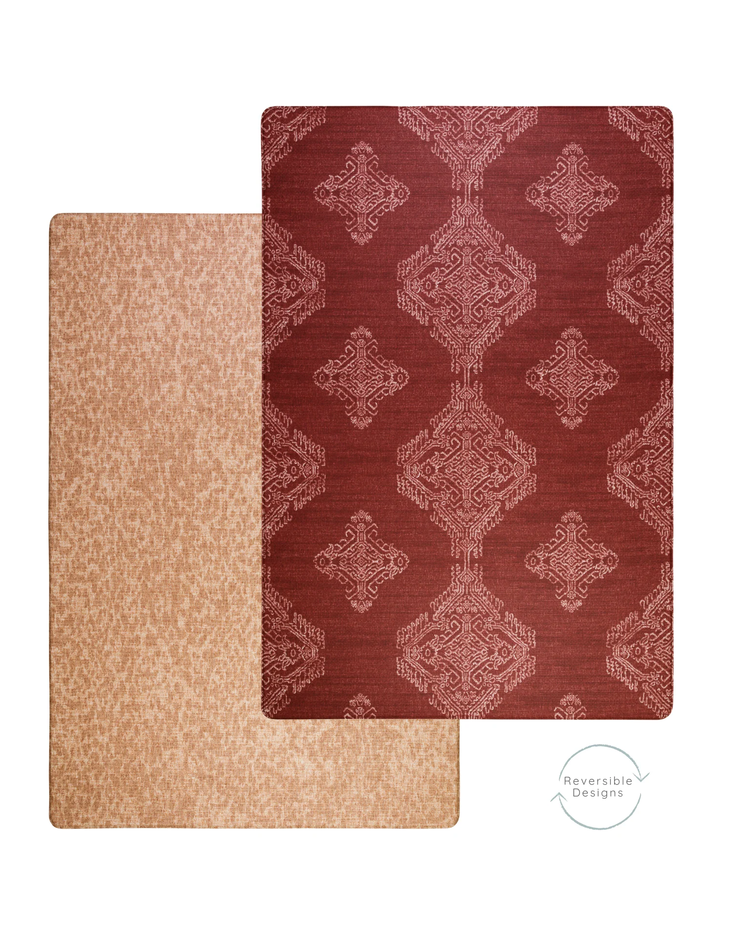 From our 2024 Islands Collection, The Merah play mat is inspired by heirloom, woven textiles. The intricate Batik detailing on a deep Raw Garnet Red background, creates a design that will sit beautifully as a practical, family-friendly rug alternative. Available in all four of our sizes, the luxury memory foam adds support for playtime or exercise on tiled and wooden flooring, while the wipeable play mat surface is easy to clean.